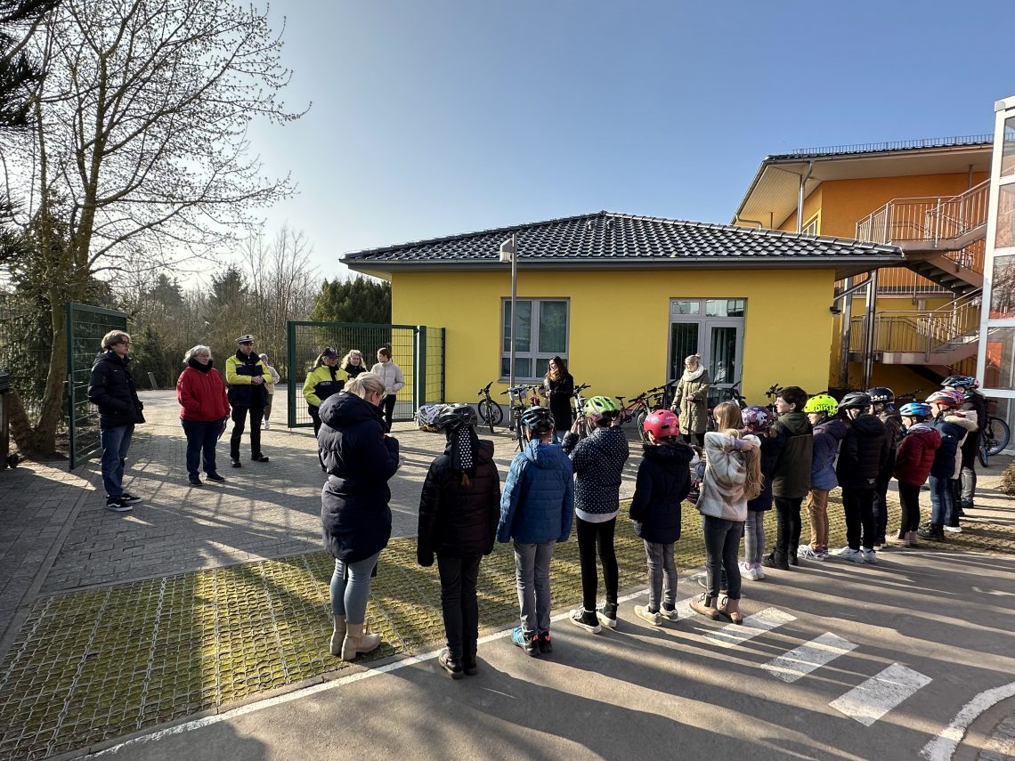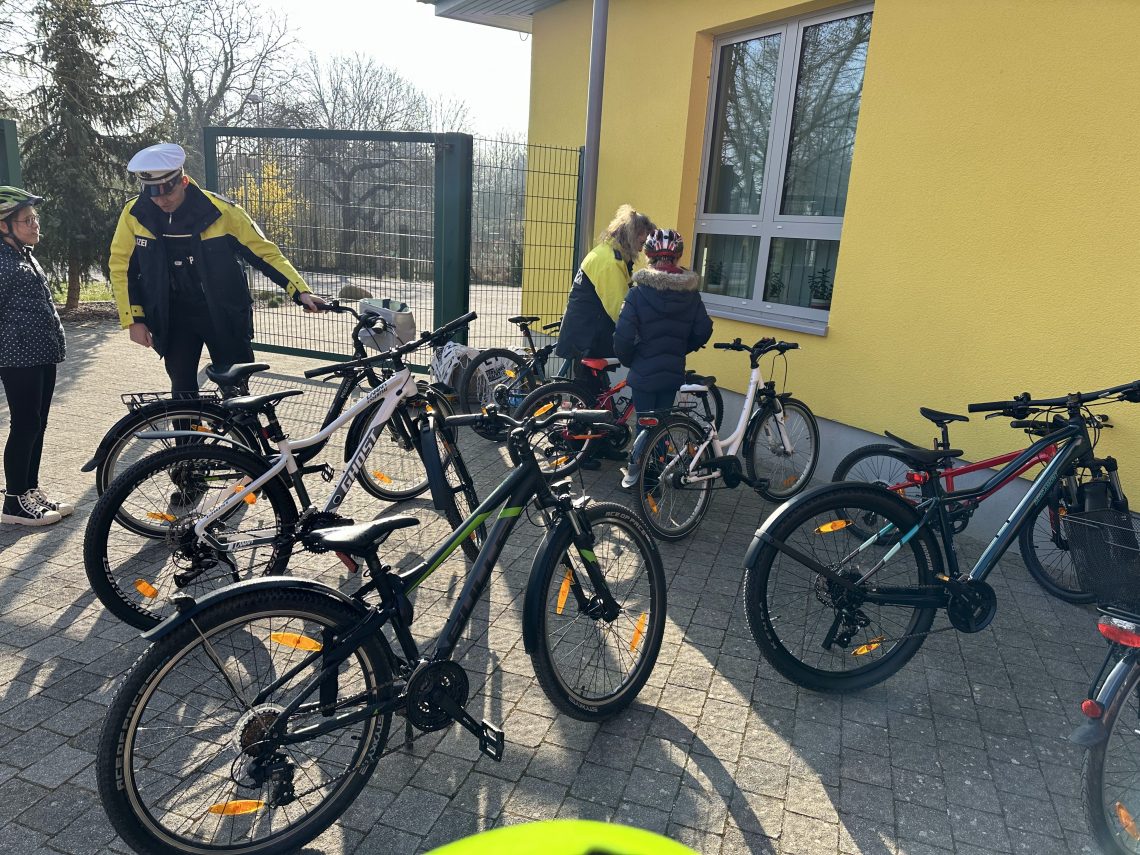 Die Woche vom 11.03. bis 15.03.2024 stand ganz im Zeichen der Verkehrserziehung für die 3. und 4. Klassen. Verkehrsregeln, Schulterblick, Handzeichen, Verkehrsschilder und vieles mehr wurde geübt und musste am Ende der Woche zur Fahrradprüfung beherrscht werden. Die örtliche Polizei kontrollierte im Vorfeld zusammen mit den Kindern der 4. Klasse die Verkehrstauglichkeit der Fahrräder und nahm im Anschluss die Prüfung ab.
