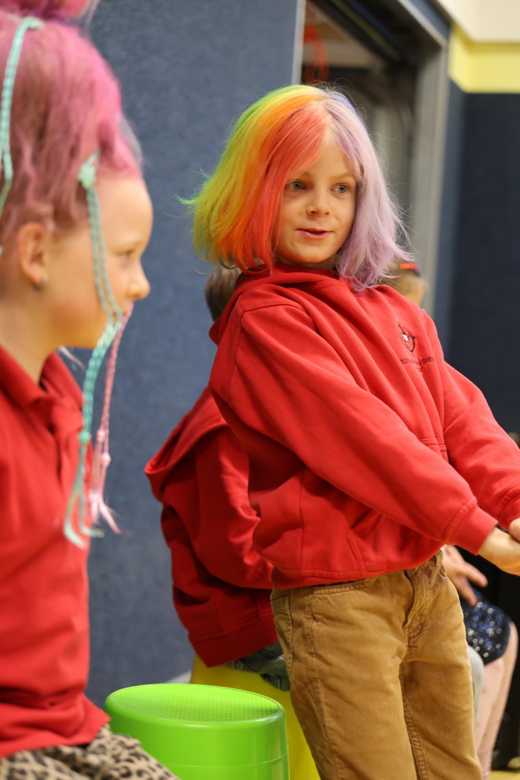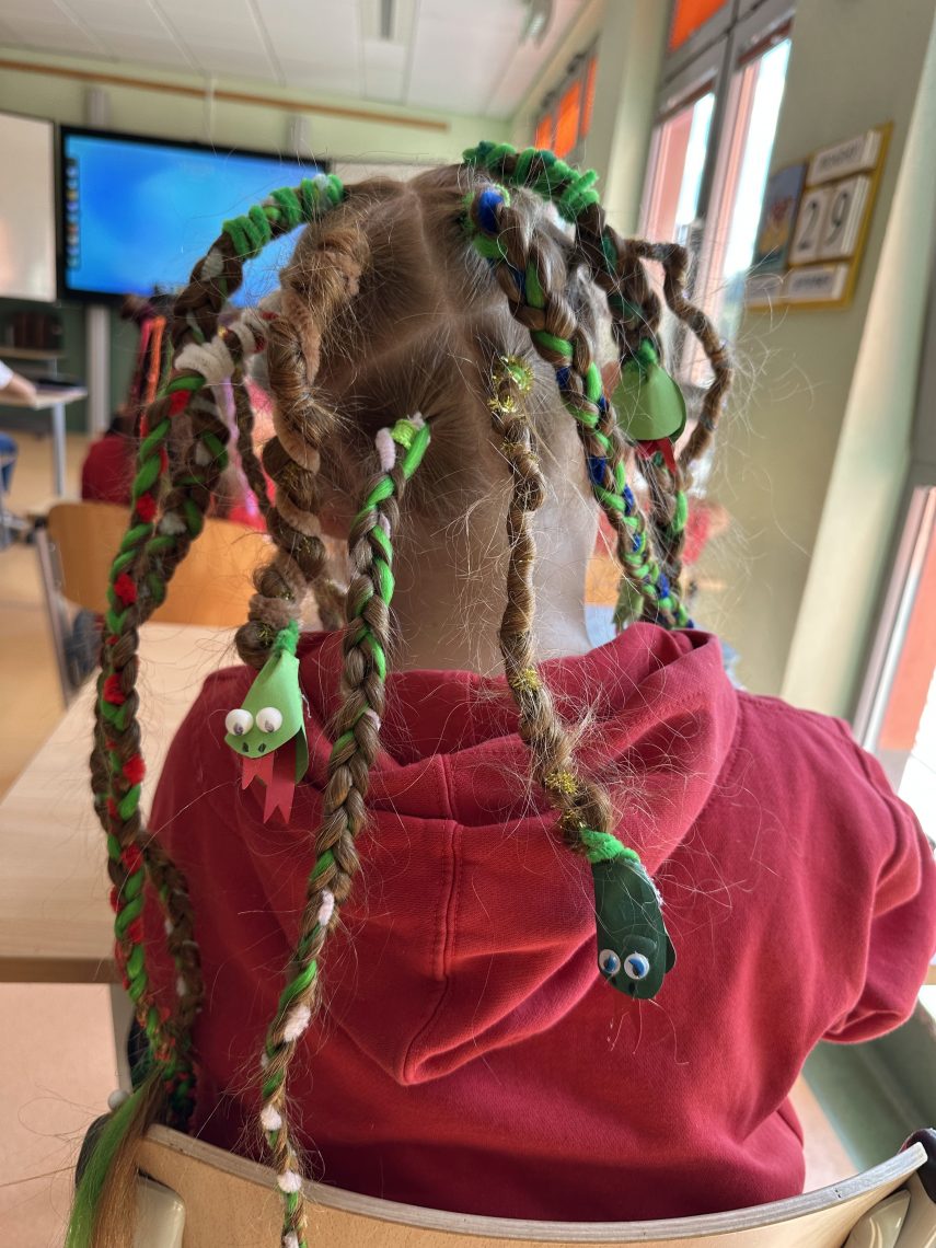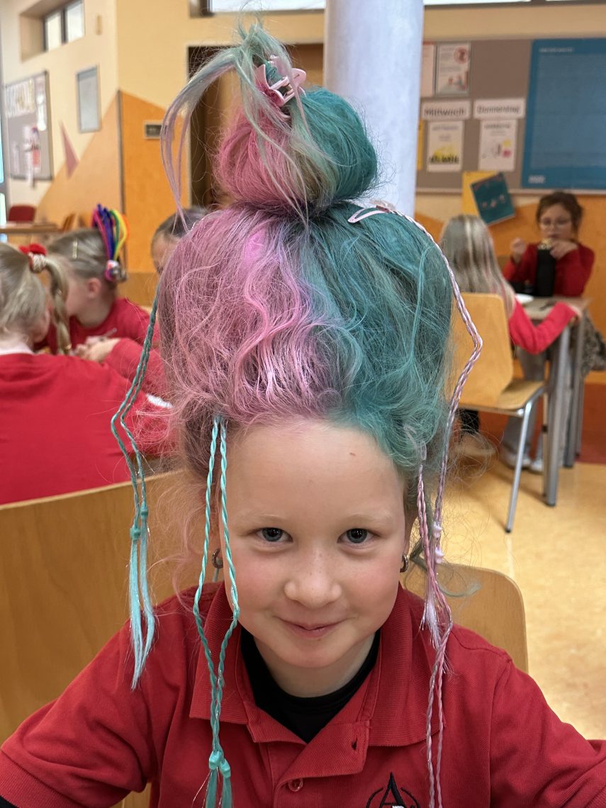 Nach einigen Jahren Pause konnten die Schülerinnen und Schüler, aber auch alle Mitarbeitenden der Bilingualen Grundschule „Altmark“ zu unserem Crazy Hair Day wieder richtig kreativ werden.