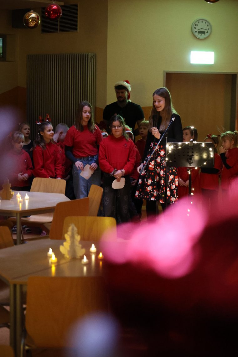 Einige Kinder der Arbeitsgemeinschaft „Kreatives Schreiben“ stellten ihre weihnachtlichen Gedichte zwischen den Liedern vor. Diese schöne Tradition stimmte alle auf die bevorstehenden Feiertage ein und bildete einen gelungenen Abschluss vor den Weihnachtsferien.