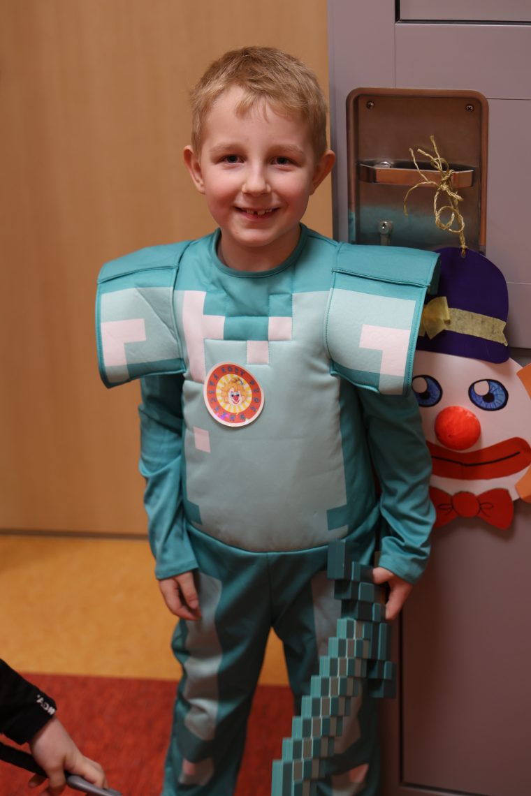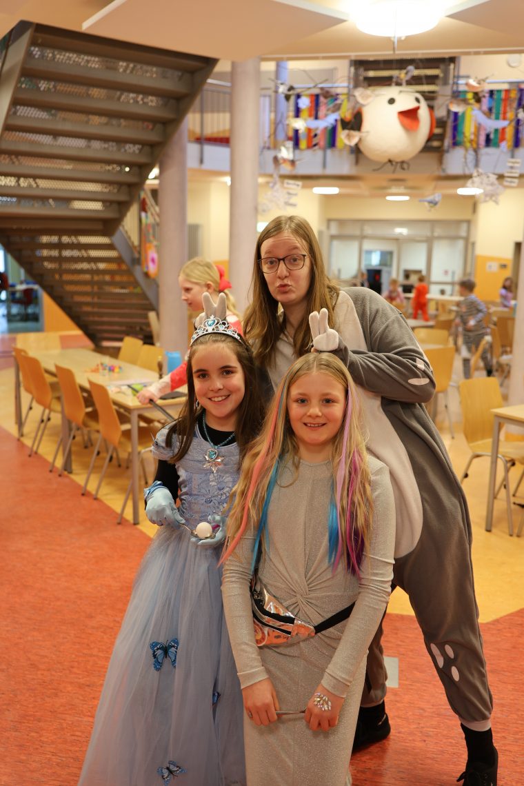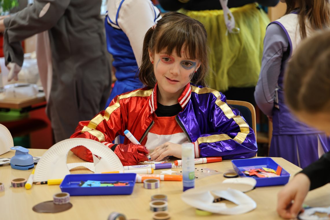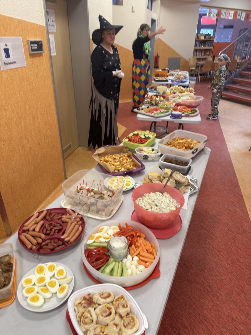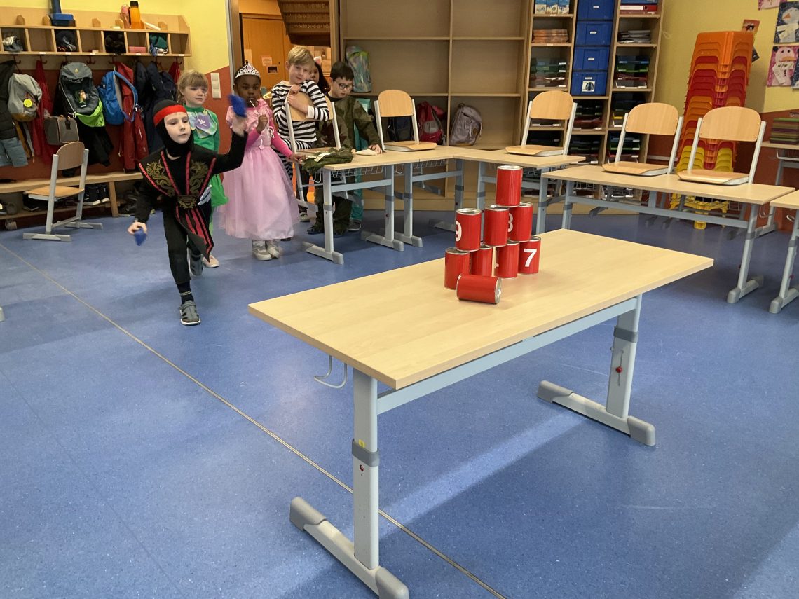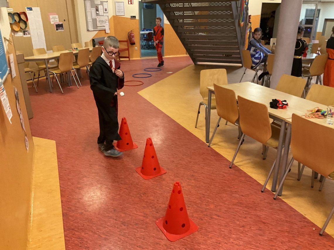 Dienstag durfte jeder der wollte, sich mit eigenem Kostüm präsentieren, denn wir feierten Fasching. Eine Vielfalt an Angeboten, wie z.B. Party- und Wettkampfspiele, Tanzen und Mitsingen zur Kinderdisco und auch kreative Angebote konnten die Kinder nutzen. Ein Dankeschön geht an alle Eltern. Durch die große Beteiligung entstand ein riesiges Buffet, an dem nichts fehlte und alle Beteiligten satt wurden.