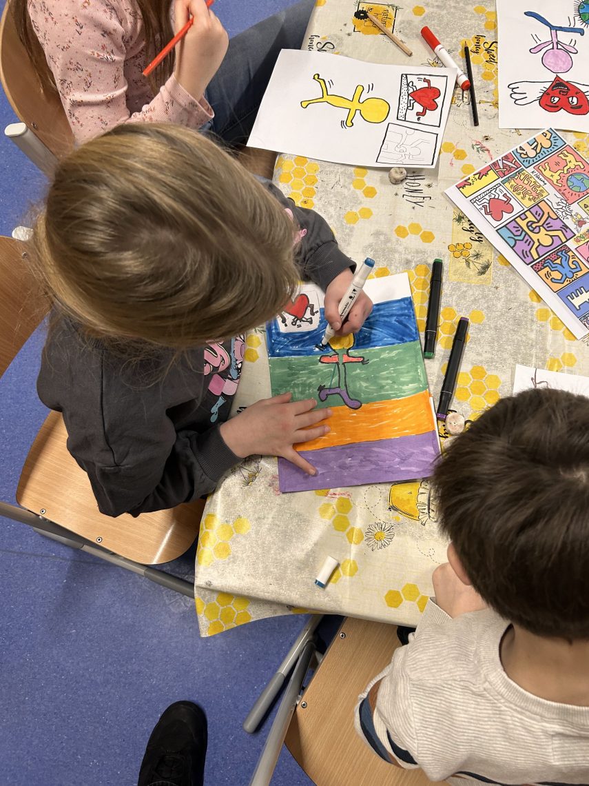 Kreativbegeisterte kamen am Mittwoch und Donnerstag auf Ihre Kosten, denn dort lernten sie unter Anleitung Tiere zu gestalten, sich architektonisch oder erfinderisch neu zu entdecken oder bewegte Kunst nach Keith Haring zu zeichnen. Zum Ausklang der Woche entspannten sich interessierte Kinder bei verschiedenen Yoga Übungen oder stellten Knete selbst her.