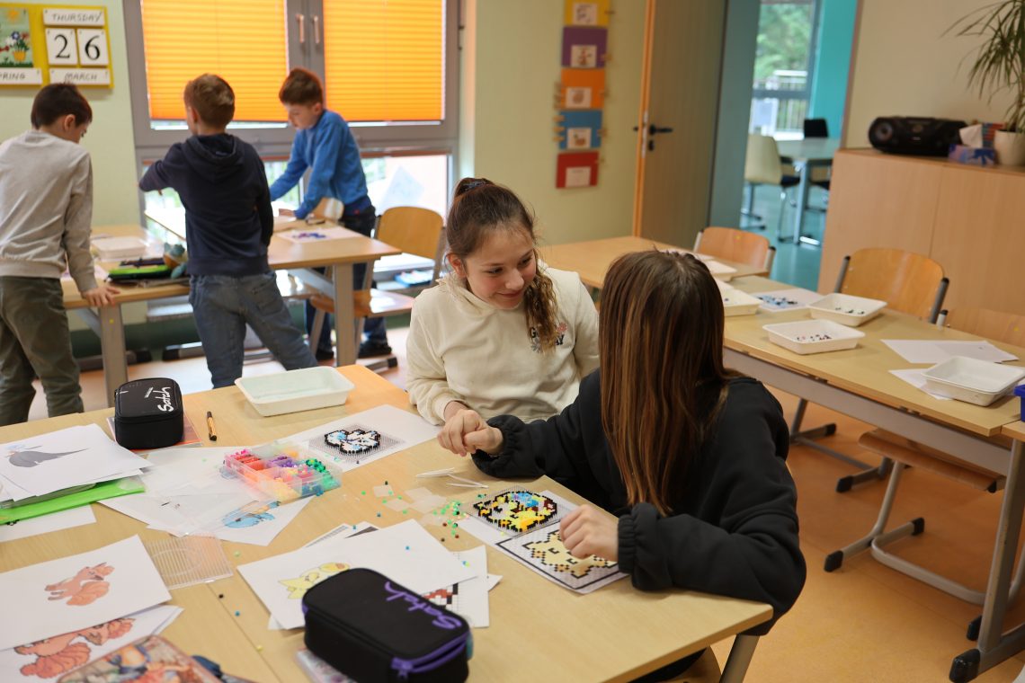 Neugierige Köpfe stellten in „Frag doch die KI“ ihre Fragen an die künstliche Intelligenz und erhielten faszinierende Einblicke in die digitale Welt. Beim Scratch-Programmierkurs wurden erste eigene Programme erstellt und spielerisch Grundlagen des Codings erlernt. Kreativ wurde es auch bei der Gestaltung eines E-Books über unsere Schule sowie in der Comic-Werkstatt, in der eigene Geschichten lebendig wurden. Besonders detailreich arbeiteten die Teilnehmenden in der Pixel-Art-Gruppe, wo beeindruckende Pokémon-Bilder entstanden.