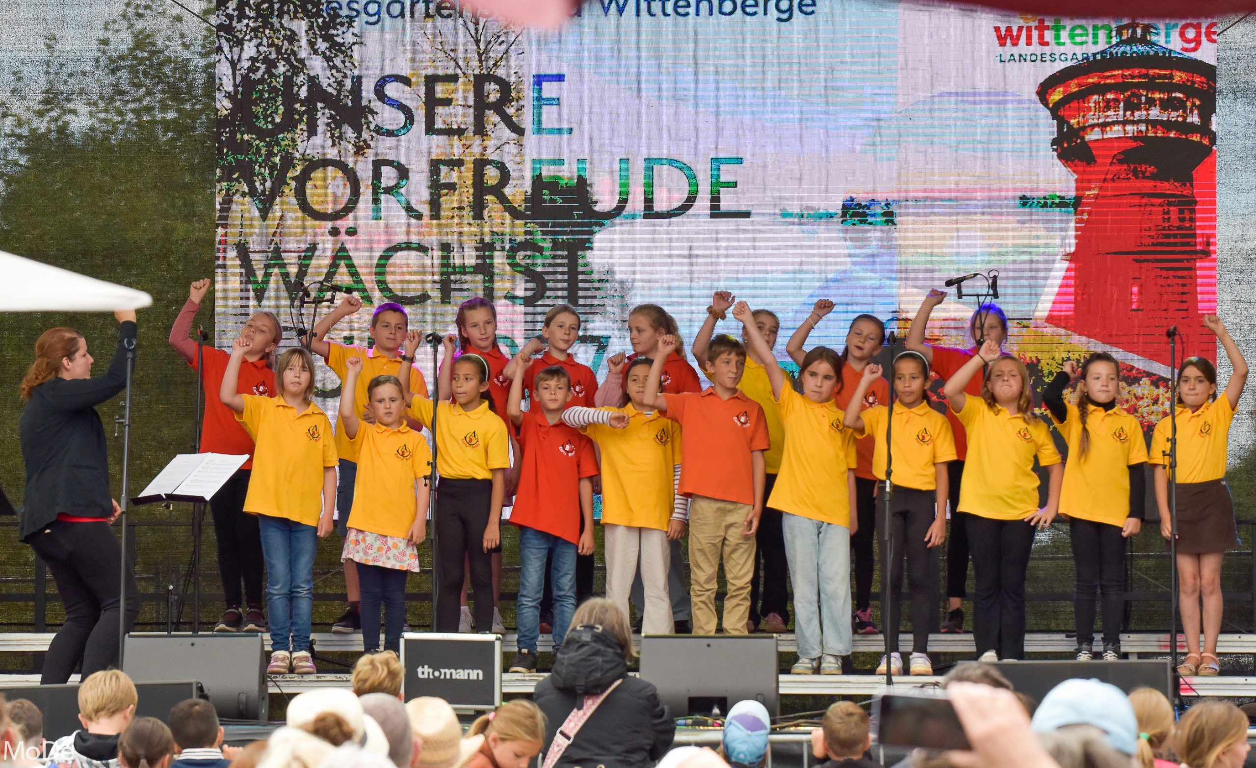 Am 24.08.2025 durften unsere „Early Birds“ (Schulchor) mit Rolf Zuckowski auf der Bühne stehen. Gemeinsam mit Kinderchören aus Wittenberge, Dessau und Magdeburg traten ca. 80 Kinder im Rahmen seiner Elbtour beim Stadt- und Hafenfest in Wittenberge auf. Sie sangen bekannte Lieder wie „Elbkinder“ oder „Freunde sein“ und hatten einen extra Auftritt mit eigenen Liedern. Der