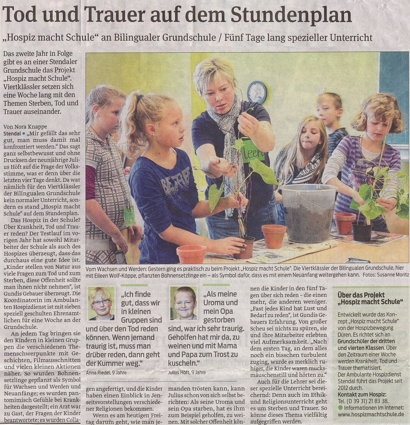 Tod und Trauer auf dem Stundenplan