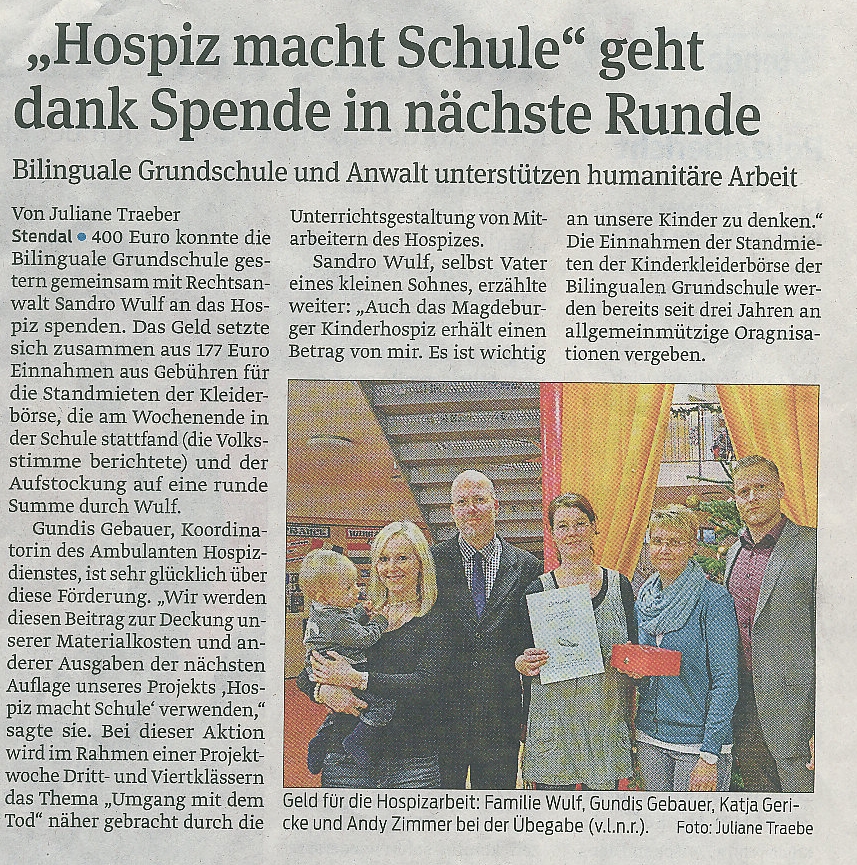 „Hospiz macht Schule“ geht dank Spende in nächste Runde