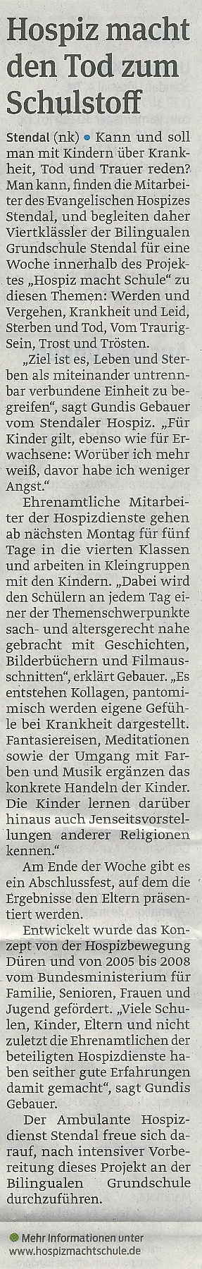 Hospiz macht Tod zum Schulstoff