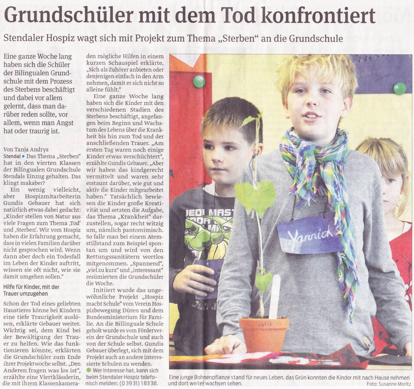 Grundschüler mit dem Tod konfrontiert